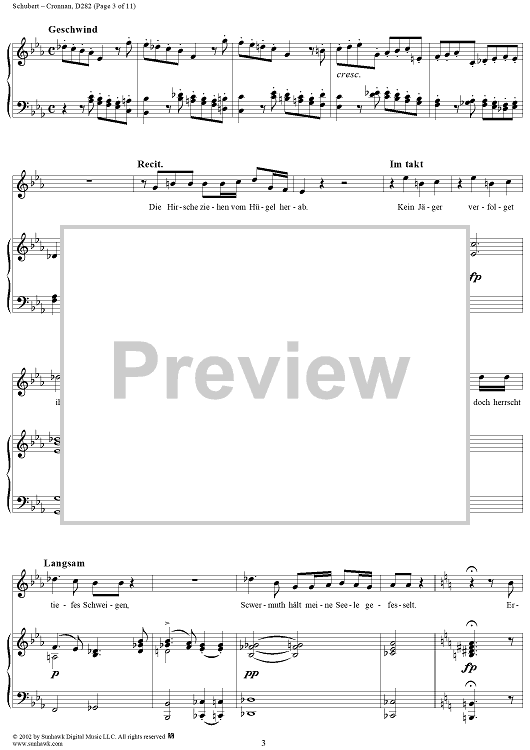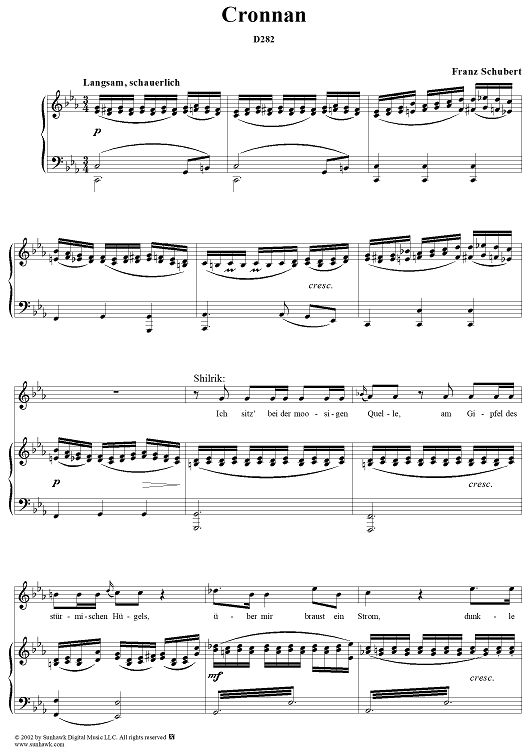 Digital Sheet Music for Cronnan, D282 by Franz Schubert scored for Voice/Piano; id:256525