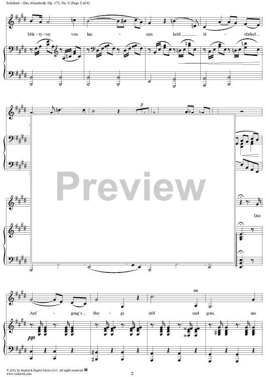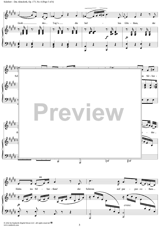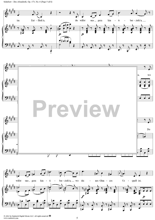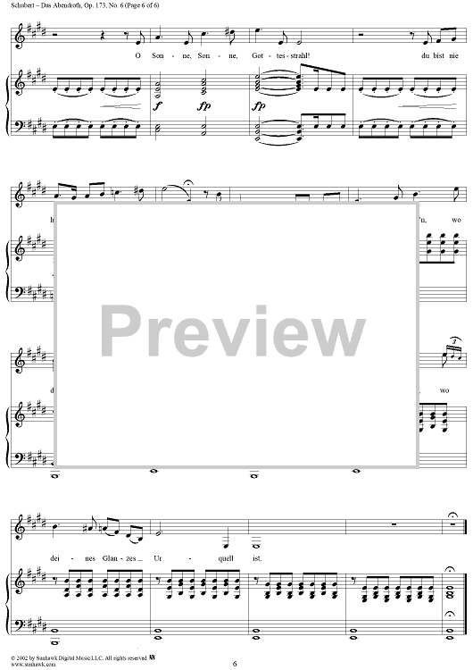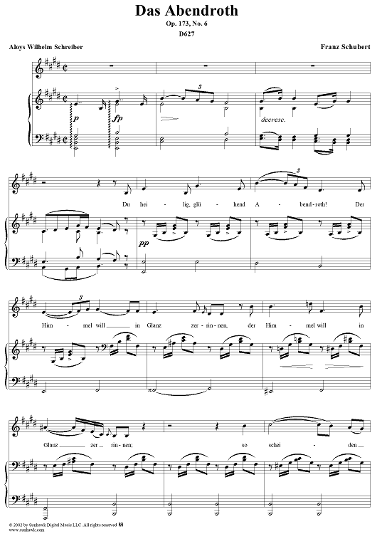 Digital Sheet Music for Das Abendrot, Op.173, No.6, D627 by Franz Schubert scored for Voice/Piano; id:256349