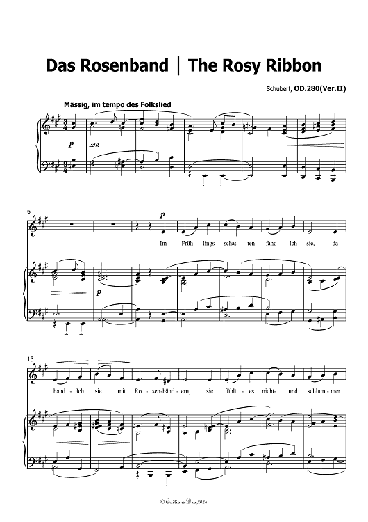 "Das Rosenband" The Rosy Ribbon" OD.280 (Ver. 2) in A Major, by Franz Schubert
