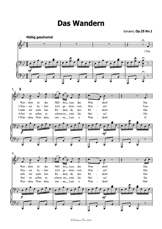 "Das Wandern", Op. 25, No. 1, in Bb Major, by Franz Schubert