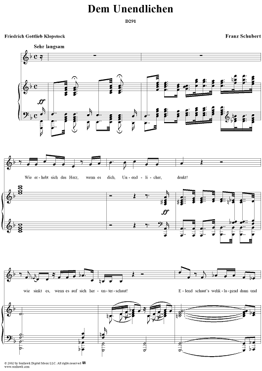 Digital Sheet Music for Dem Unendlichen, D291 by Franz Schubert scored for Voice/Piano; id:256659