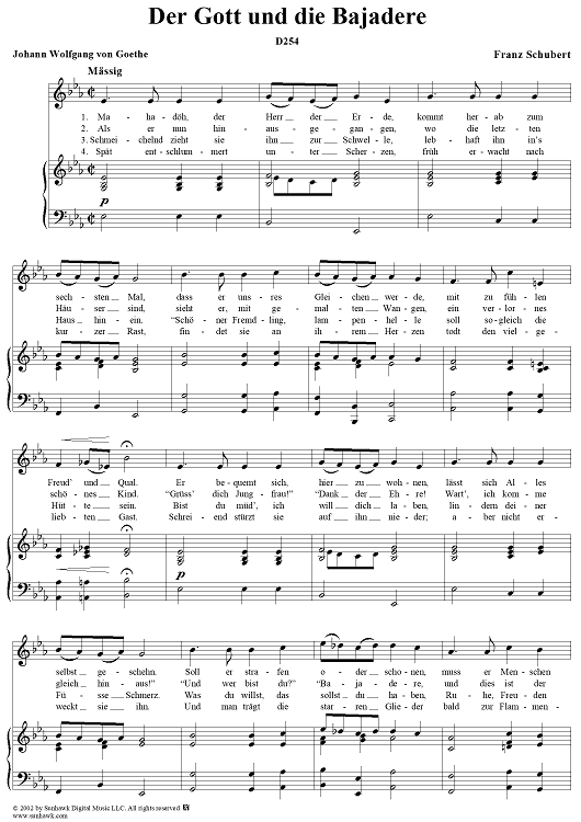 Digital Sheet Music for Der Gott und die Bajadere, D254 by Franz Schubert scored for Voice/Piano; id:256592
