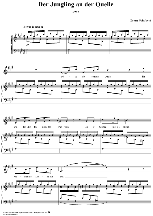 Digital Sheet Music for Der Jüngling an der Quelle, D300 by Franz Schubert scored for Voice/Piano; id:256879
