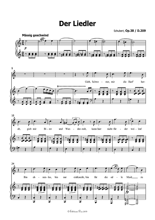 "Der Liedler" Op. 38, D.209 in A minor, by Franz Schubert