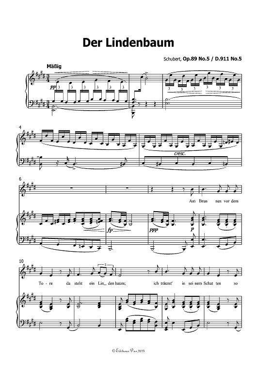 "Der Lindenbaum",Op. 89 No. 5 D.911 in E Major, by Franz Schubert