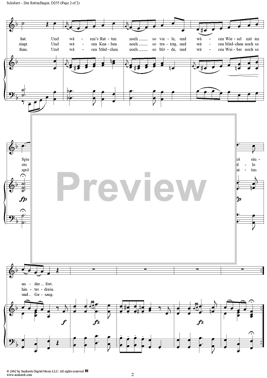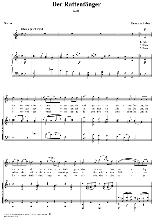 Digital Sheet Music for Der Rattenfänger, D255 by Franz Schubert scored for Voice/Piano; id:256895