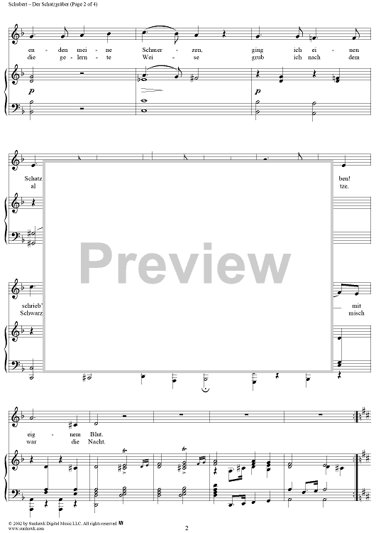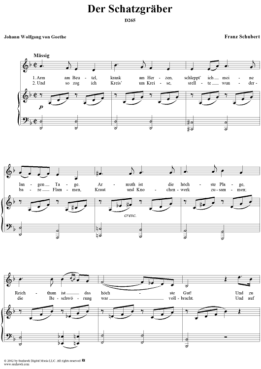 Digital Sheet Music for Der Schatzgräber, D265 by Franz Schubert scored for Voice/Piano; id:256900