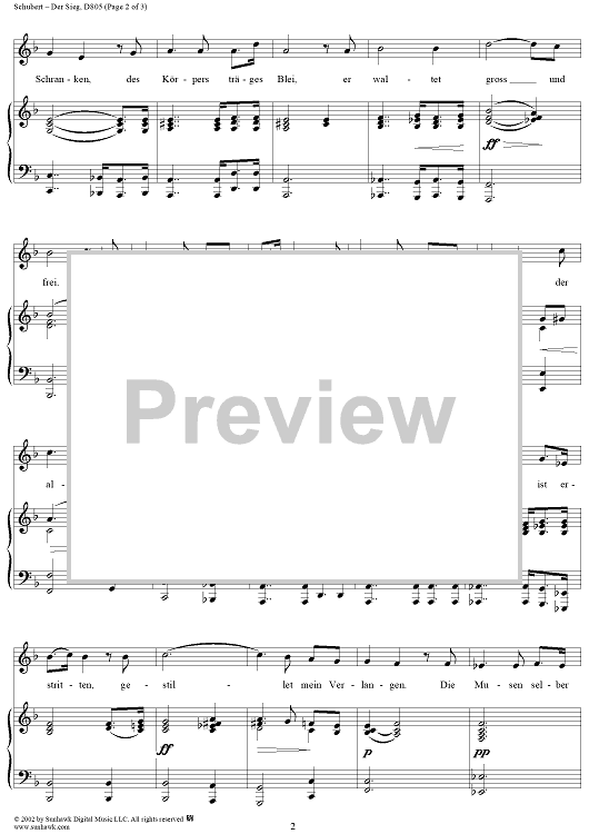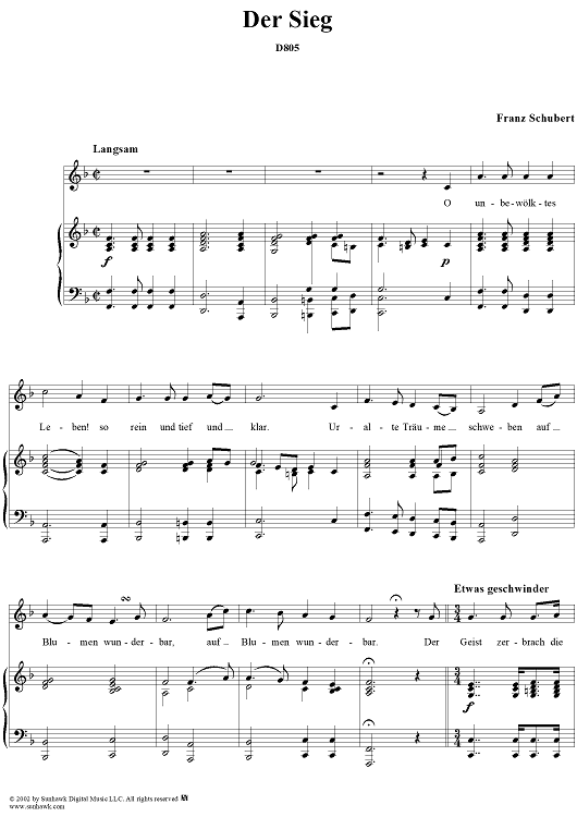 Digital Sheet Music for Der Sieg, D805 by Franz Schubert scored for Voice/Piano; id:256924