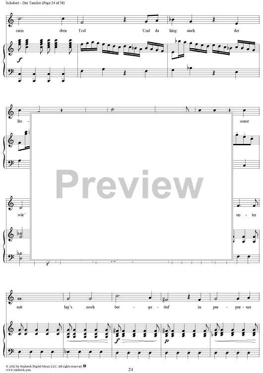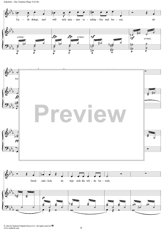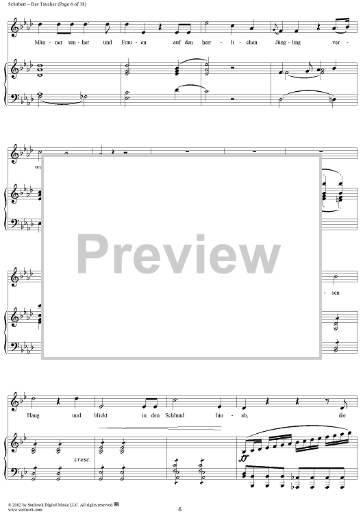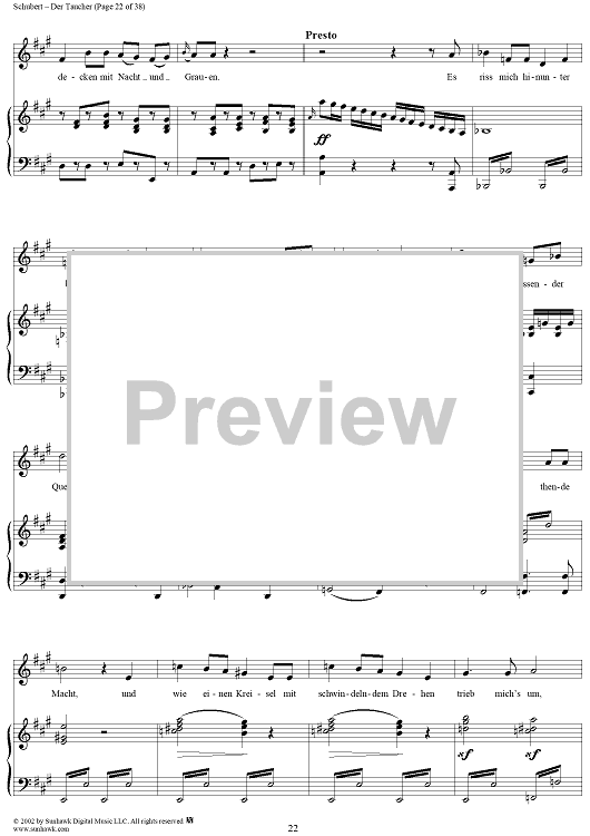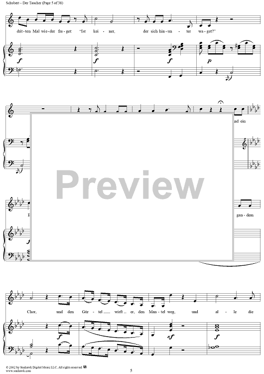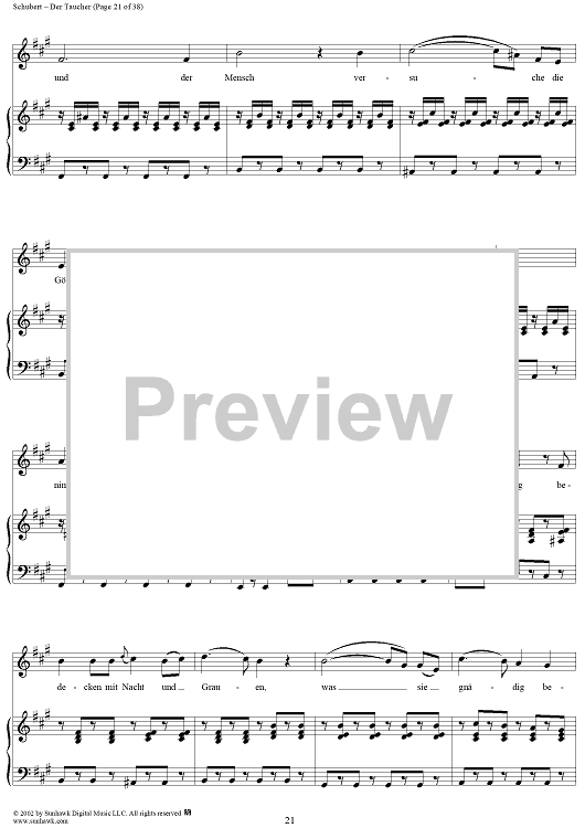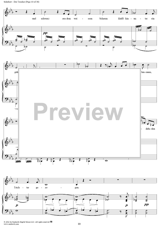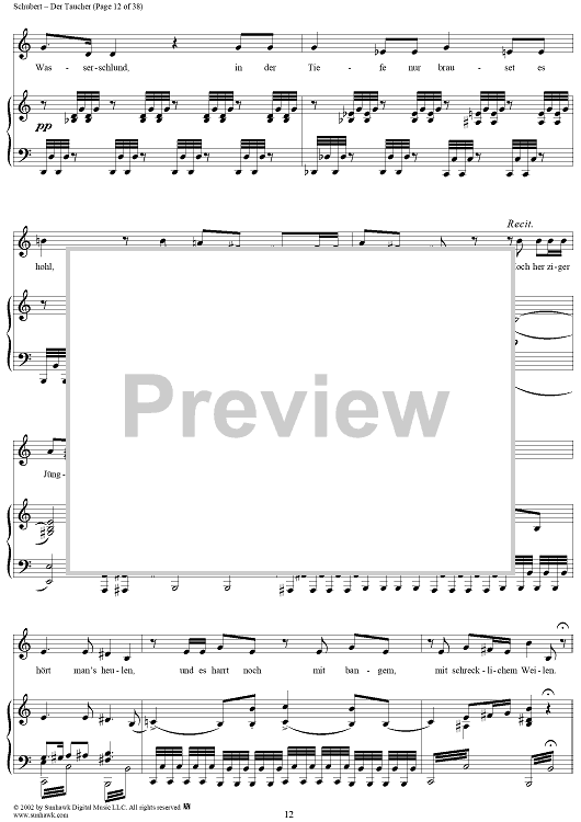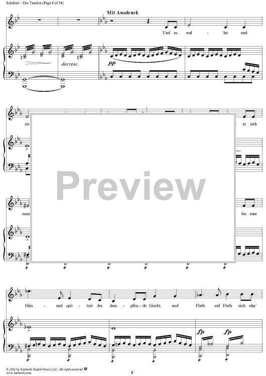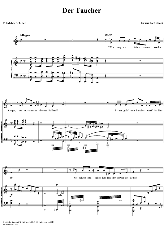 Digital Sheet Music for Der Taucher by Franz Schubert scored for Voice/Piano; id:256637