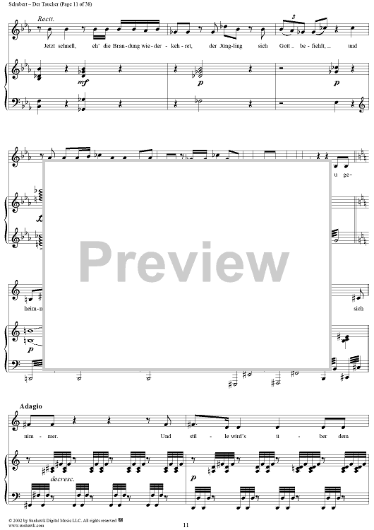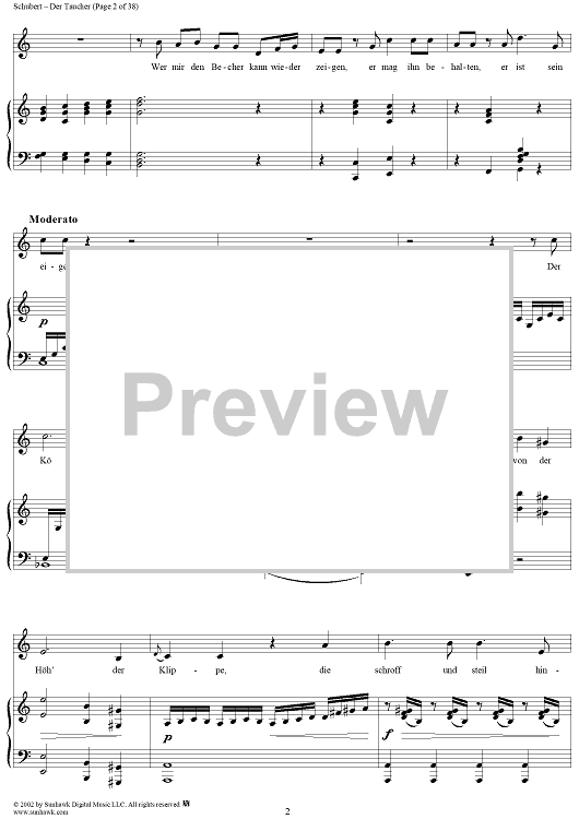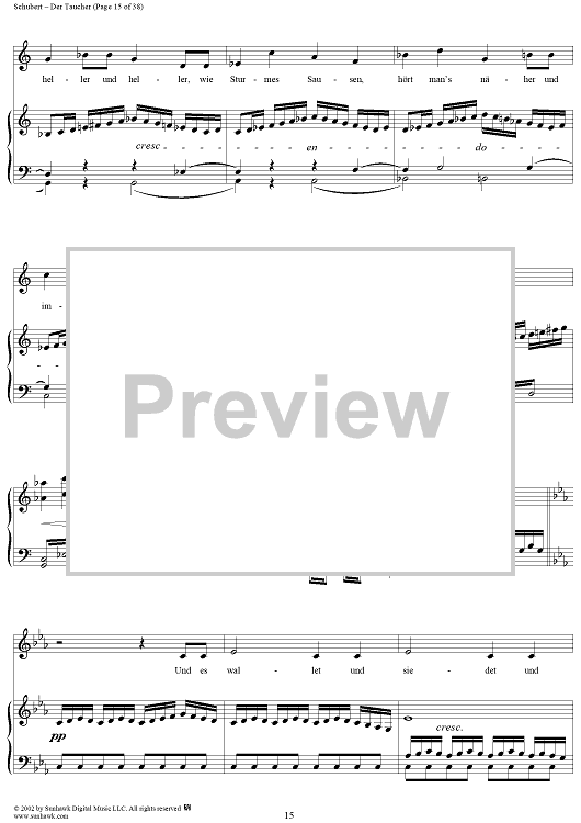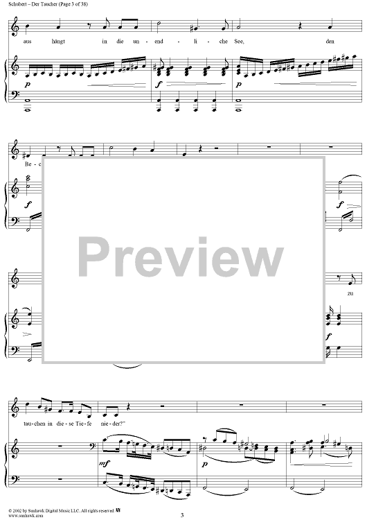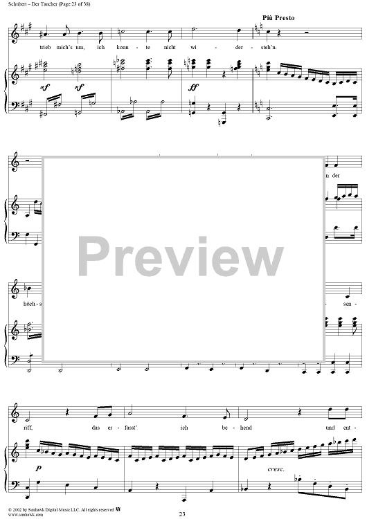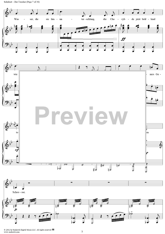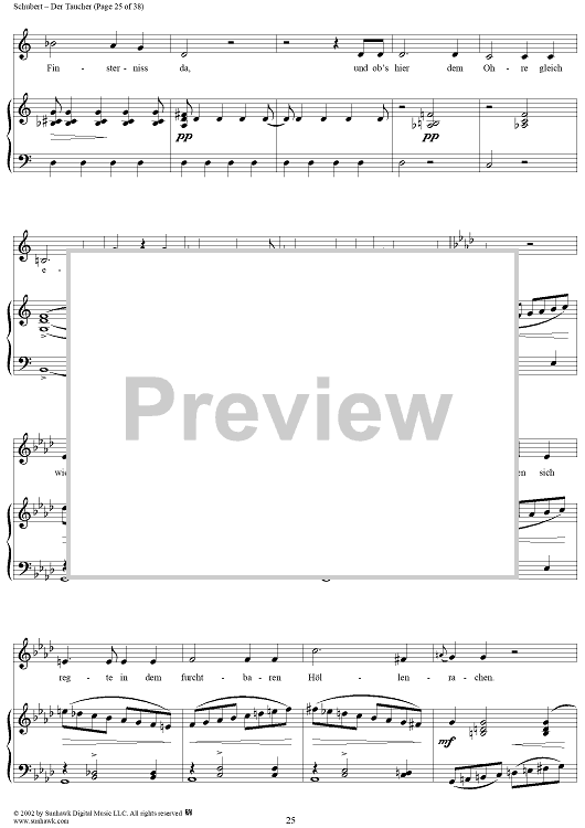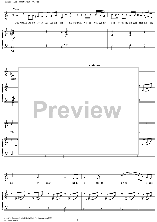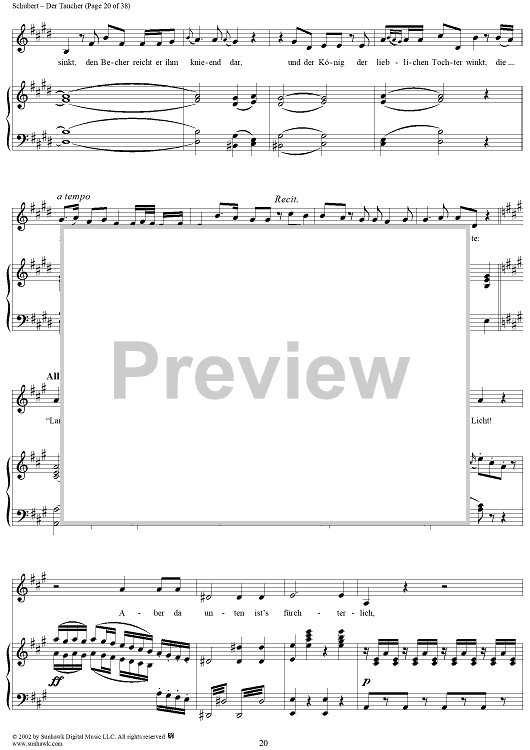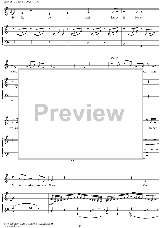 Digital Sheet Music for Der Taucher by Franz Schubert scored for Voice/Piano; id:256637