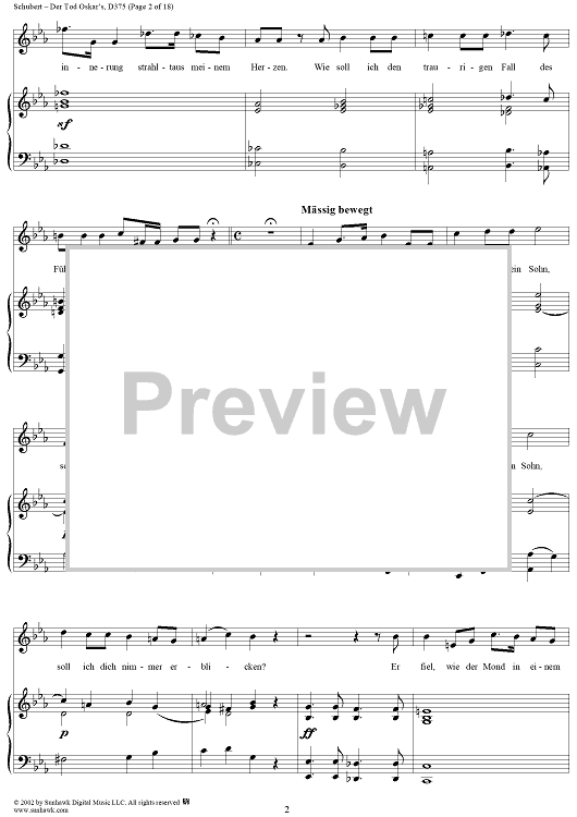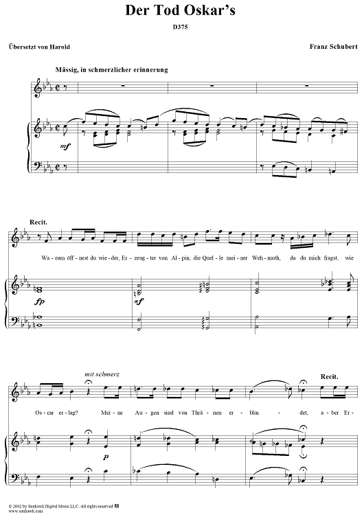 Digital Sheet Music for Der Tod Oskar's, D375 by Franz Schubert scored for Voice/Piano; id:256868