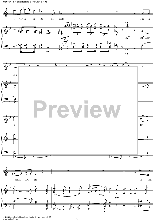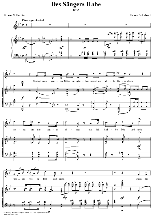 Digital Sheet Music for Des Sängers Habe, D832 by Franz Schubert scored for Voice/Piano; id:256913