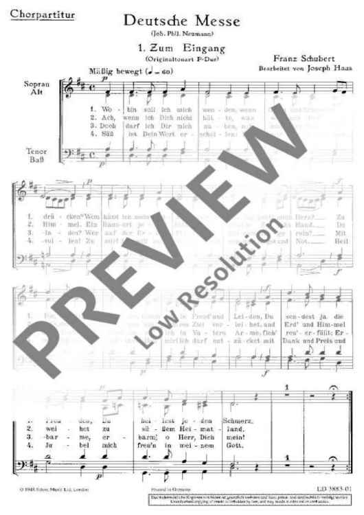 Digital Sheet Music for Deutsche Messe - Choral Score by Franz Schubert, Joseph Haas scored for Mixed Choir (satb) Or Female Choir (s/sa) And Organ Or Orchestra Or Wind Band; id:473012