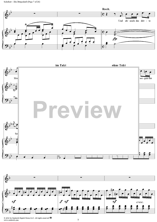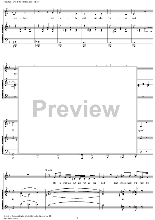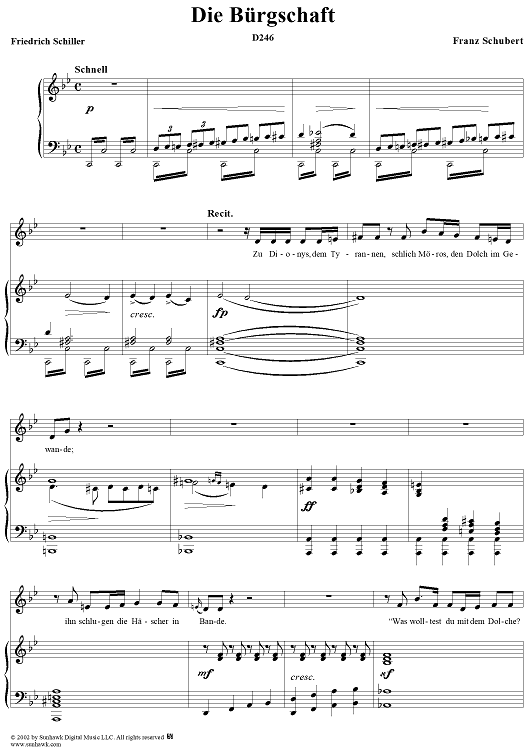 Digital Sheet Music for Die Burgschaft, D246 by Franz Schubert scored for Voice/Piano; id:256507