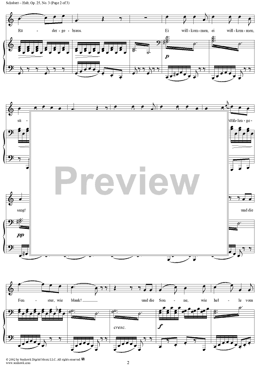 Digital Sheet Music for Die schöne Müllerin, No. 03 - Halt!, Op. 25, D795 - No. 3 from "Die Schöne Müllerin" Op.25 - D795 by Franz Schubert scored for Voice/Piano; id:256616