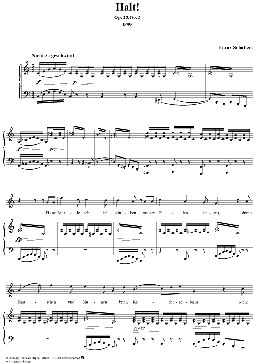 "Die schöne Müllerin, No. 03 - Halt!, Op. 25, D795 - No. 3 from "Die Schöne Müllerin" Op.25 - D795" Sheet Music by Franz Schubert
