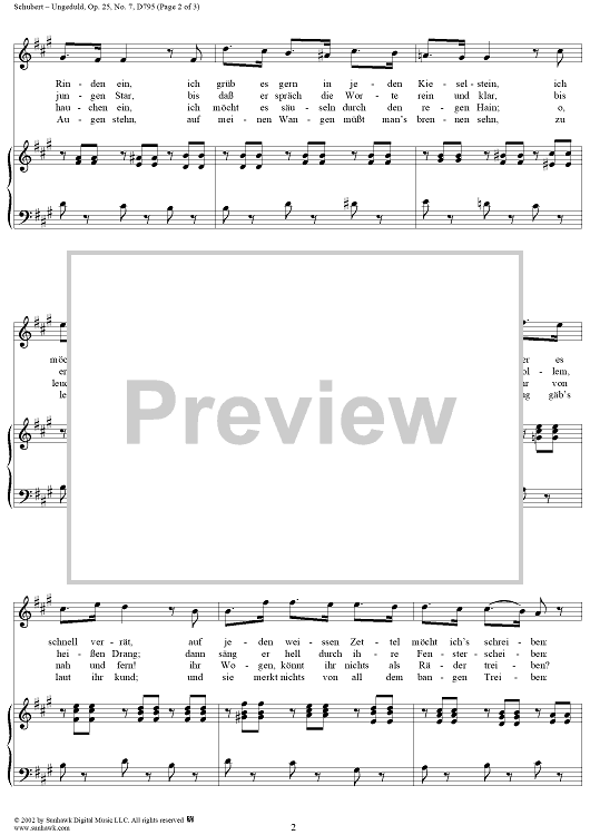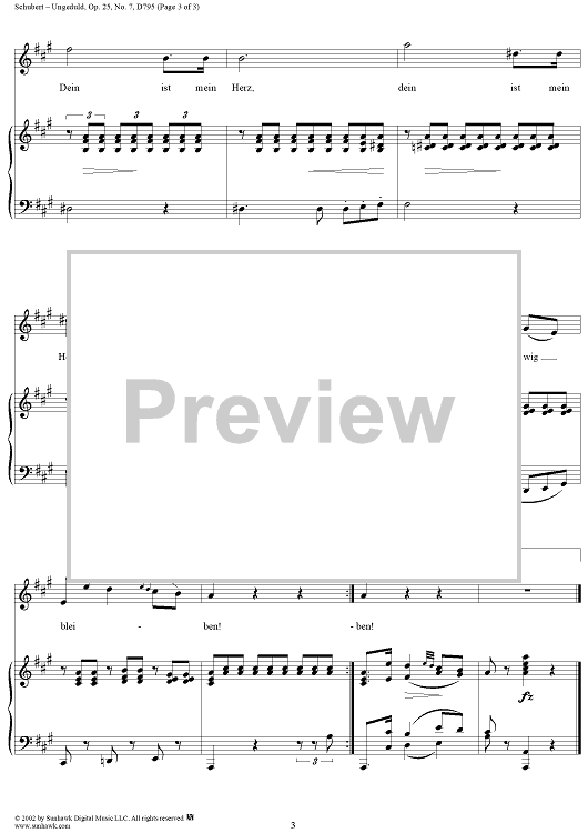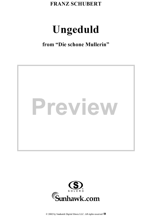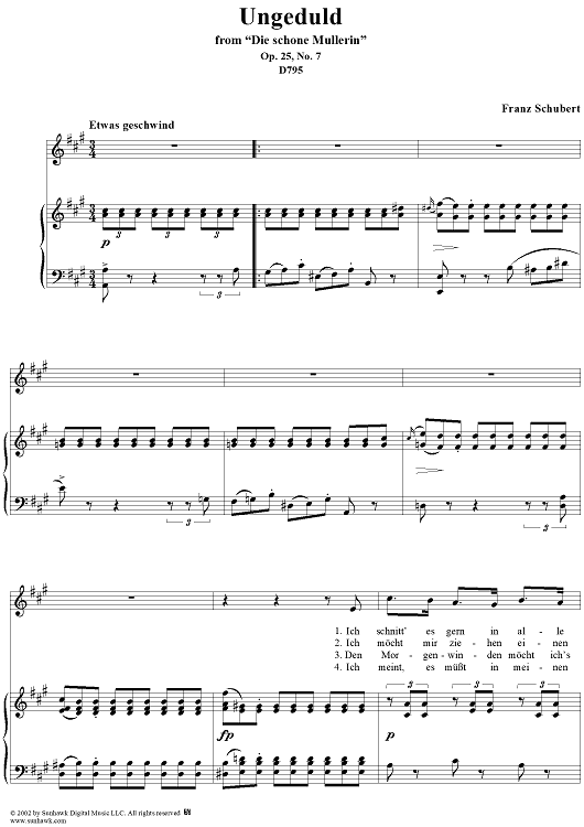 Digital Sheet Music for Die schöne Müllerin, No. 07 - Ungeduld, Op. 25, D795 - No. 7 from "Die Schöne Müllerin" Op.25 - D795 by Franz Schubert scored for Voice/Piano; id:256660