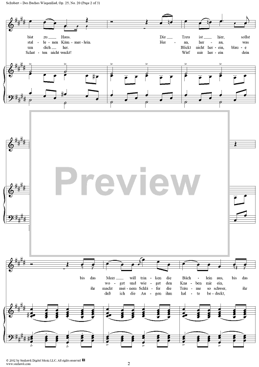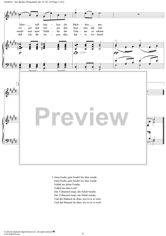 Digital Sheet Music for Die schöne Müllerin, No. 20 - Des Baches Wiegenlied, Op. 25, D795 - No. 20 from "Die Schöne Müllerin" Op.25 - D795 by Franz Schubert scored for Voice/Piano; id:256546