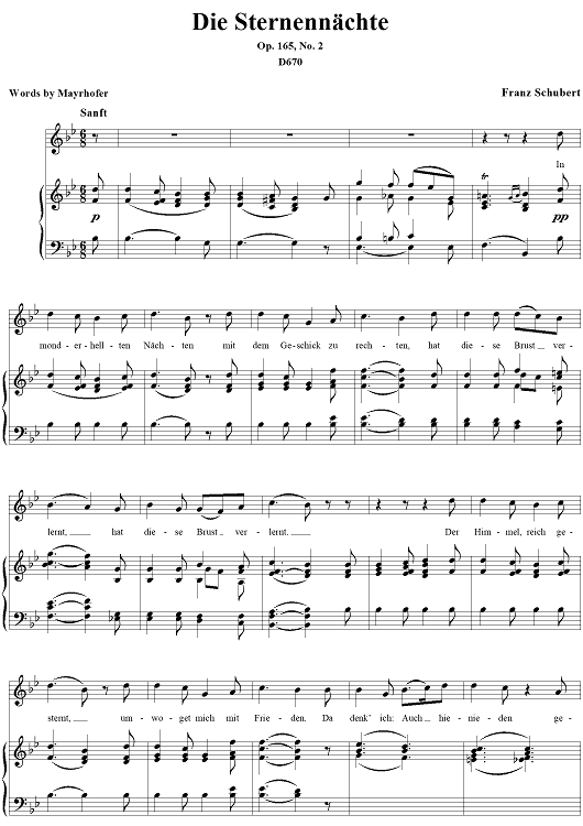 Digital Sheet Music for Die Sternennächte, Op.165, No.2, D670 by Franz Schubert scored for Voice/Piano; id:256919