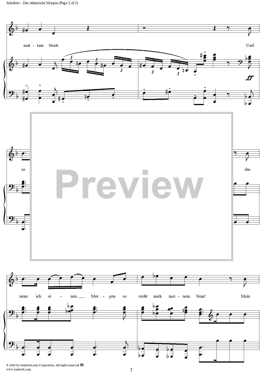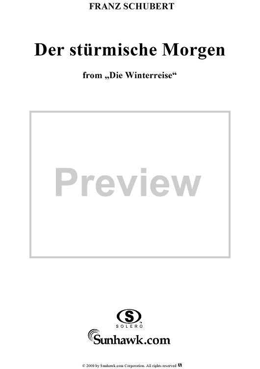Digital Sheet Music for Die Winterreise, no. 18: Der stürmische Morgen by Franz Schubert scored for Voice/Piano; id:256542