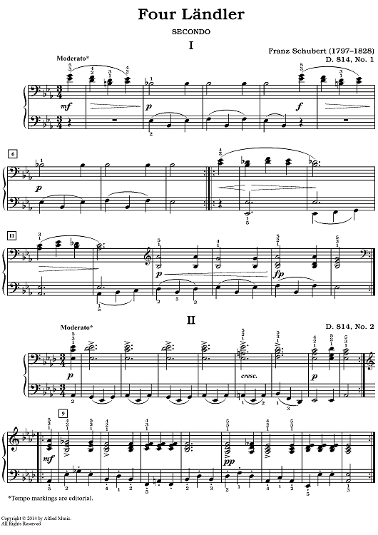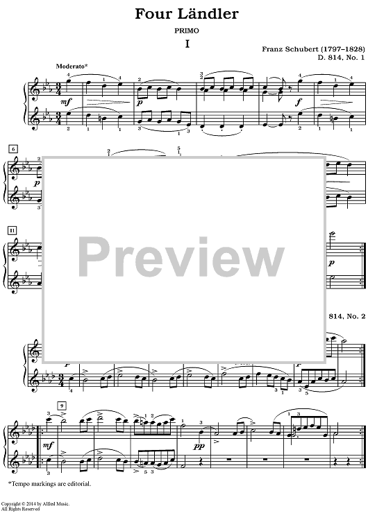 "Four Ländler, D. 814, Nos. 1--4" Sheet Music by Franz Schubert