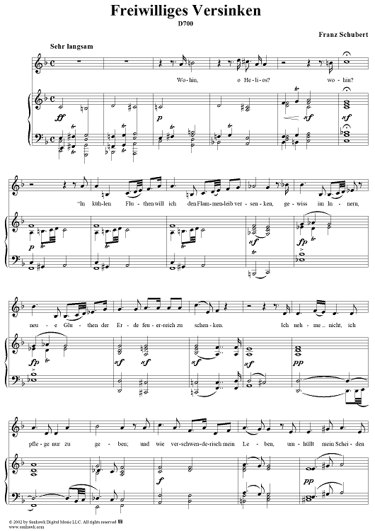 Digital Sheet Music for Freiwilliges Versinken, D700 by Franz Schubert scored for Voice/Piano; id:256585