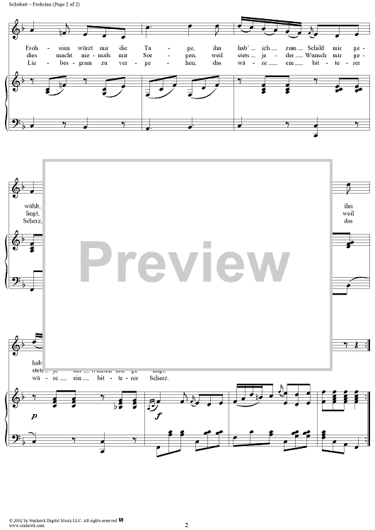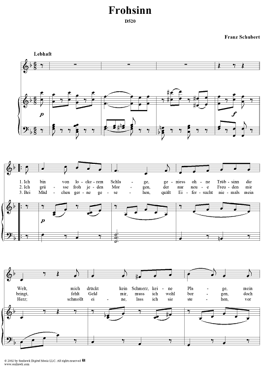 Digital Sheet Music for Frohsinn, D520 by Franz Schubert scored for Voice/Piano; id:256587