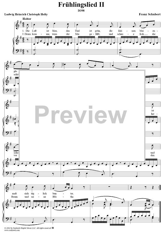 Digital Sheet Music for Frühlingslied II, D398 by Franz Schubert scored for Voice/Piano; id:256565
