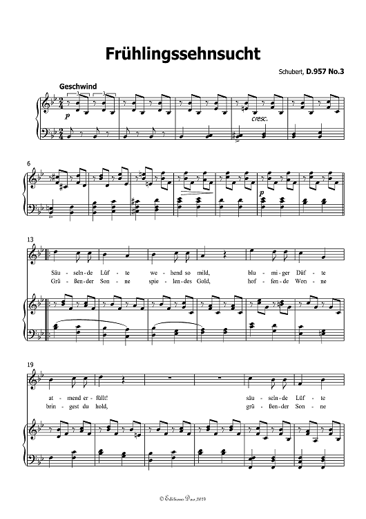 "Fruhlingssehnsucht" D.957 No. 3 in Bb Major. By Franz Schubert