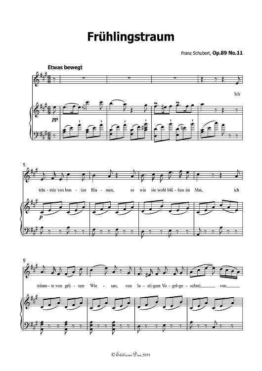 "Fruhlingstraum" Op. 89 No. 11 in A Major. By Franz Schubert