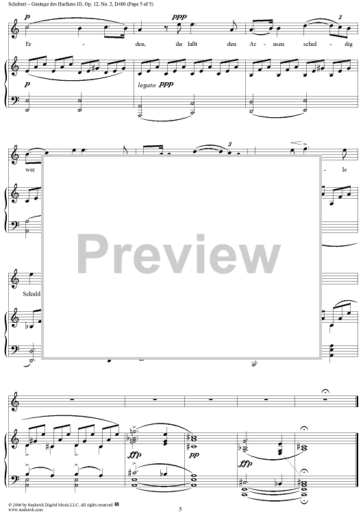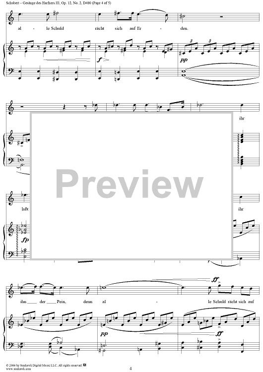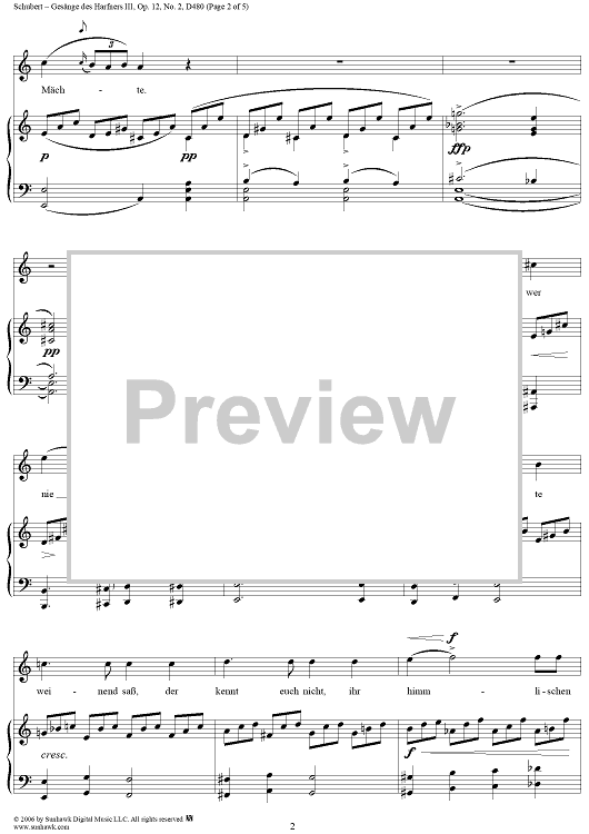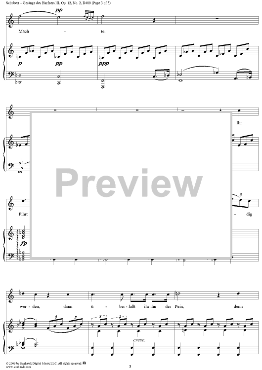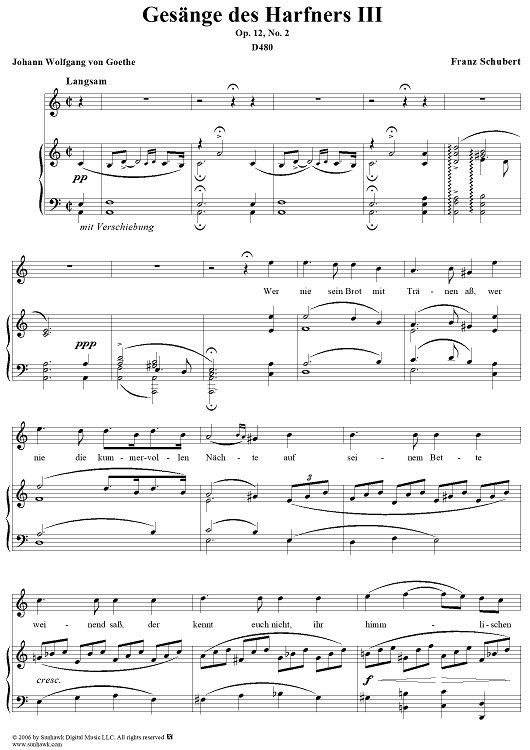 Digital Sheet Music for Gesänge des Harfners III by Johann Wolfgang von Goethe, Franz Schubert scored for Voice/Piano; id:318269