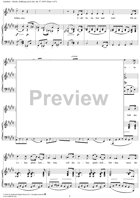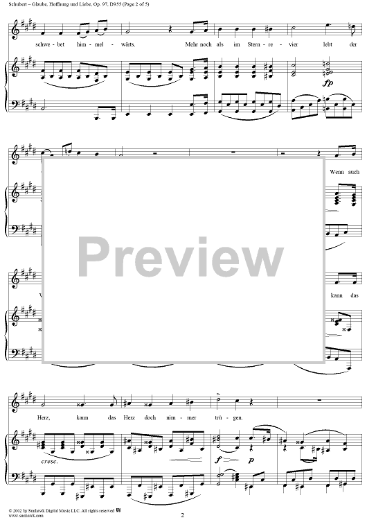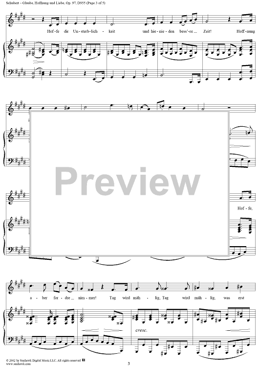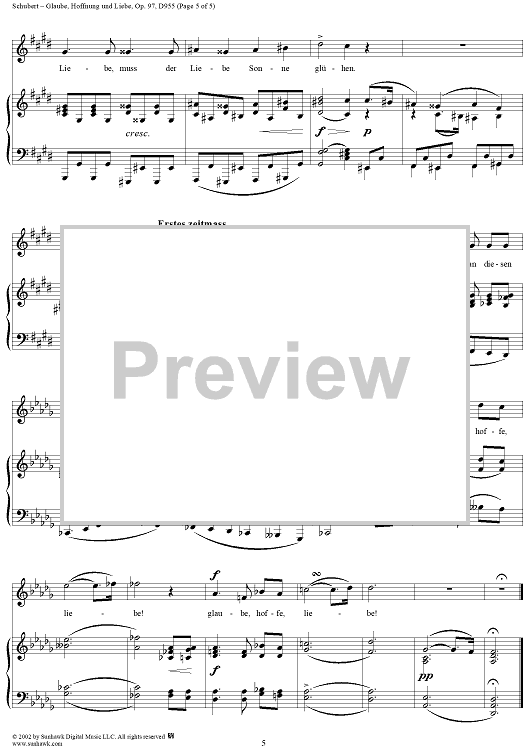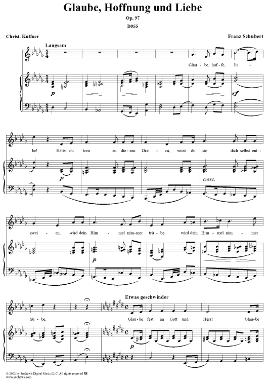 Digital Sheet Music for Glaube, Hoffnung und Liebe, Op.97, D955 by Franz Schubert scored for Voice/Piano; id:256582