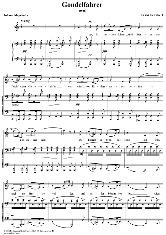 Digital Sheet Music for Gondelfahrer I by Franz Schubert, Joh. Mayrhofer scored for Voice/Piano; id:318215