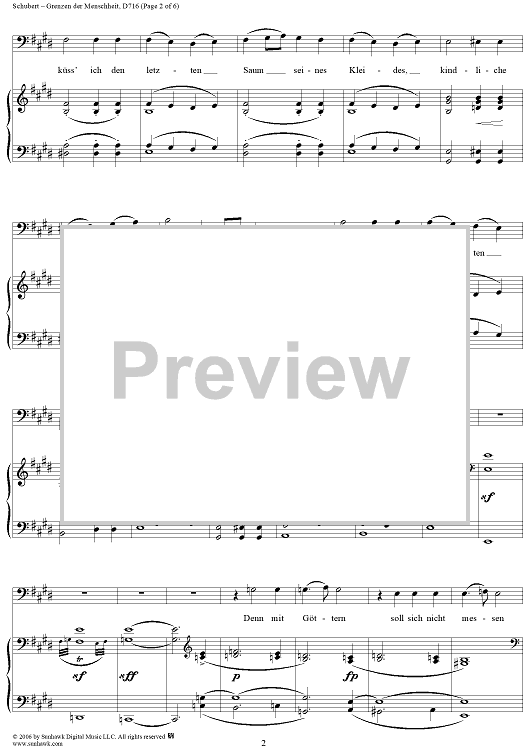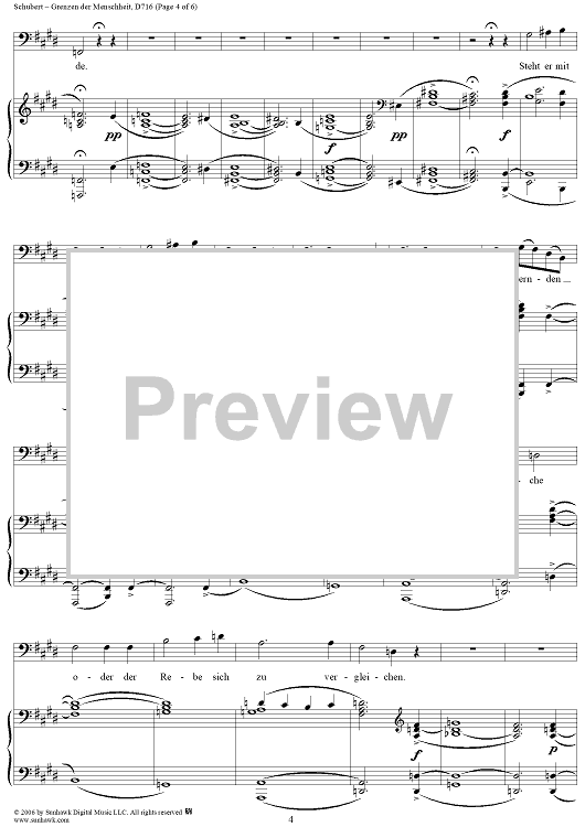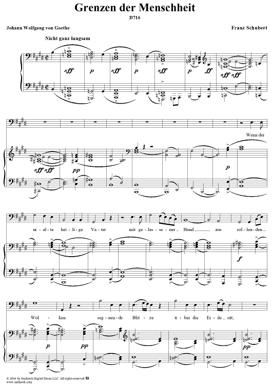 Digital Sheet Music for Grenzen der Menschheit by Johann Wolfgang von Goethe, Franz Schubert scored for Voice/Piano; id:318264