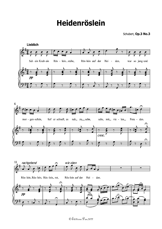 "Heidenroslein" Op. 3 No. 3 in G Major, by Franz Schubert