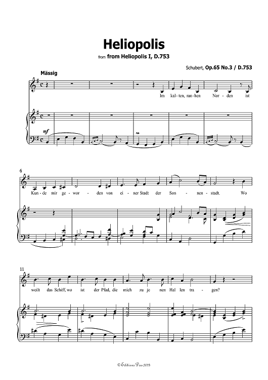 "Heliopolis" from 'Heliopolis I' Op. 65 No. 3. D.753 in E minor. By Franz Schubert