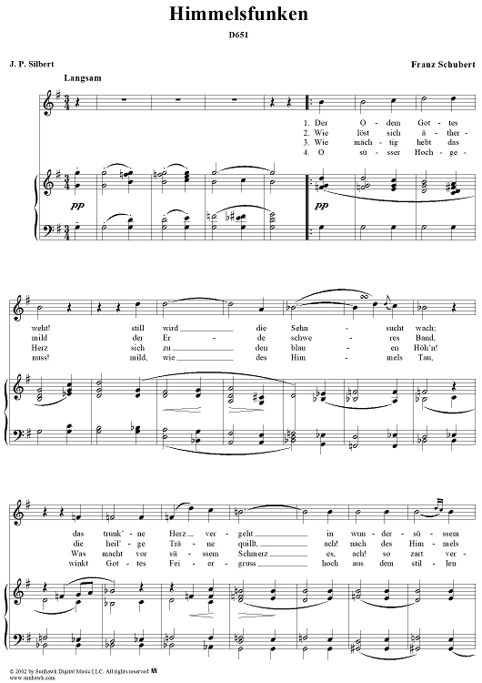 Digital Sheet Music for Himmelsfunken, D651 by Franz Schubert scored for Voice/Piano; id:256312