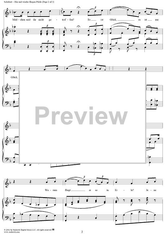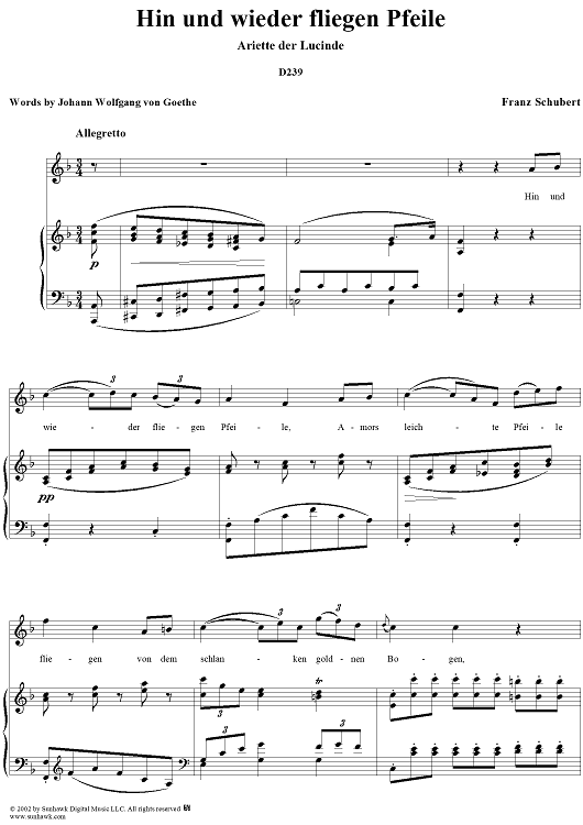 Digital Sheet Music for Hin und wieder fliegen Pfeile by Franz Schubert scored for Voice/Piano; id:256869