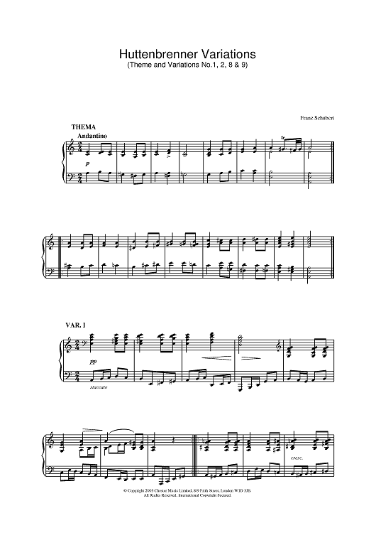 "Huttenbrenner Variations" Sheet Music by Franz Schubert