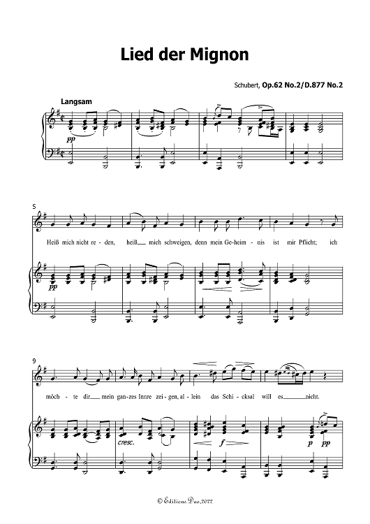 "Lied der Mignon" from Wilhelm Meister Op. 62 No. 2, D.877 in E minor. By Franz Schubert