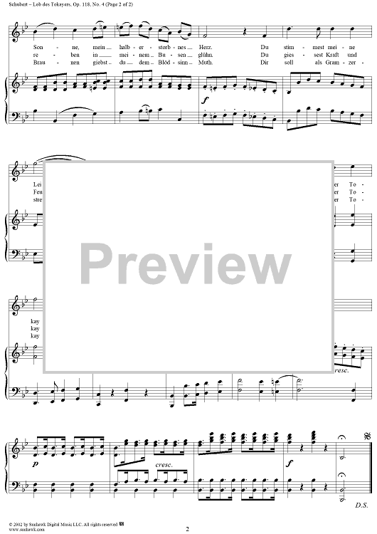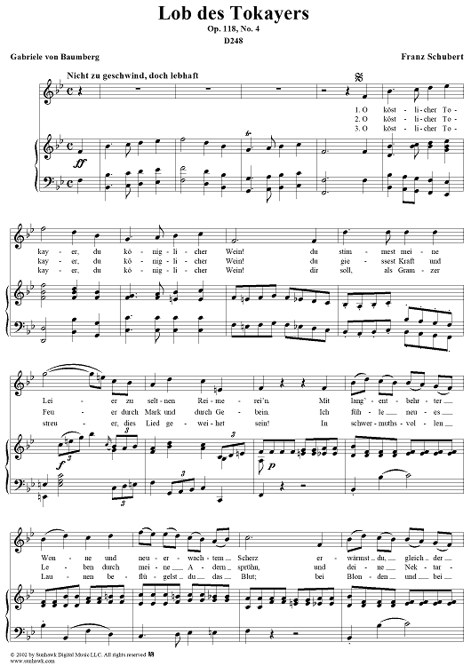 Digital Sheet Music for Lob des Tokayers, Op, 118, No. 4, D248 by Franz Schubert scored for Voice/Piano; id:256643