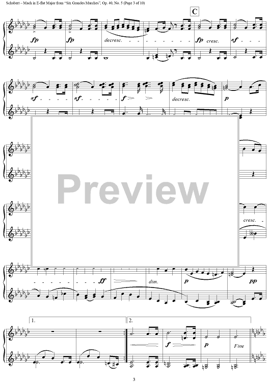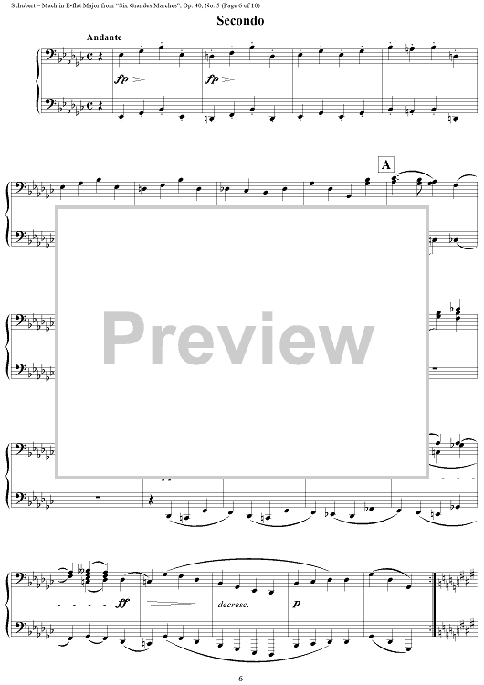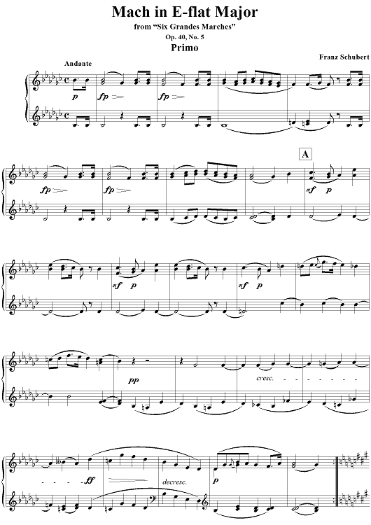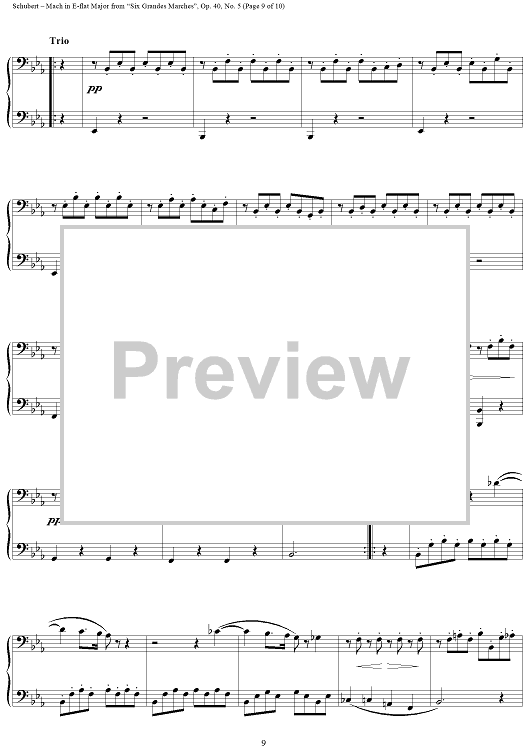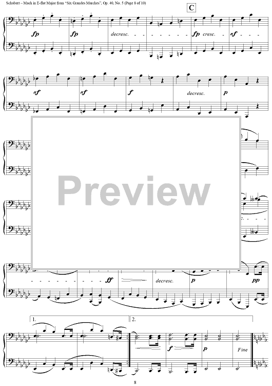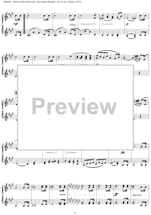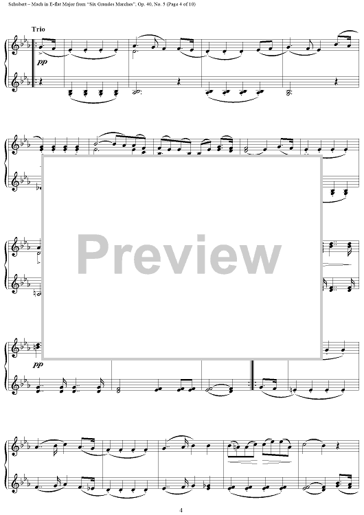 Digital Sheet Music for March in E-flat Major, No. 5 from "Six Grandes Marches", Op. 40 by Franz Schubert scored for 1 Piano, 4 Hands; id:298044