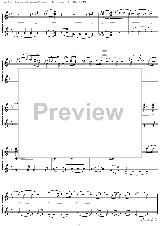 "March in E-flat Major, No. 5 from "Six Grandes Marches", Op. 40" Sheet Music by Franz Schubert