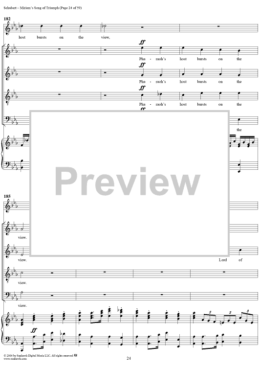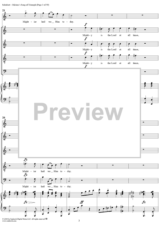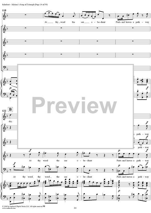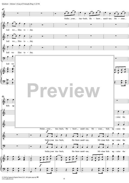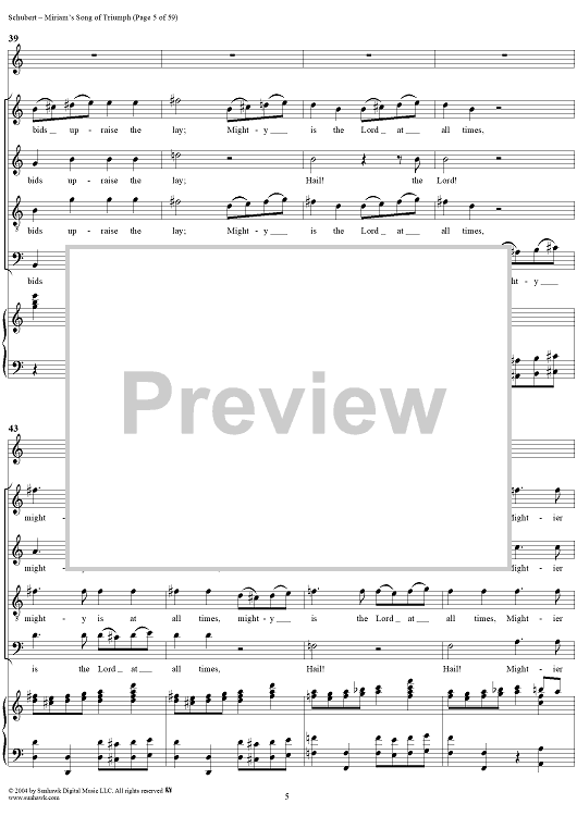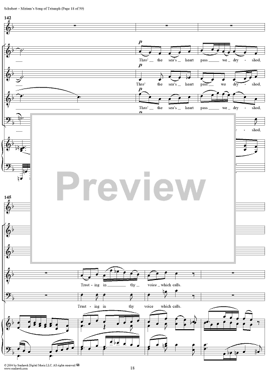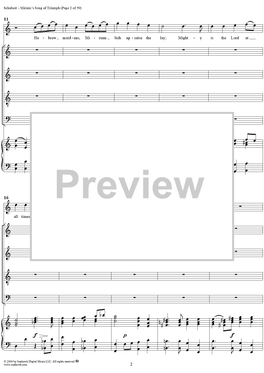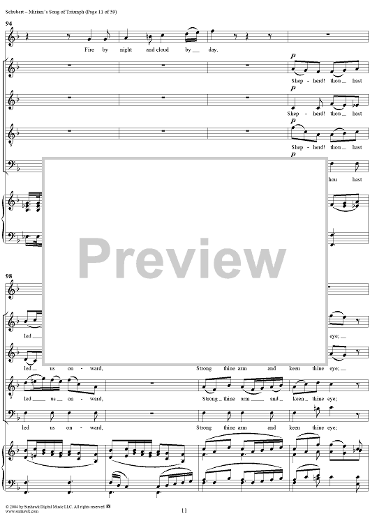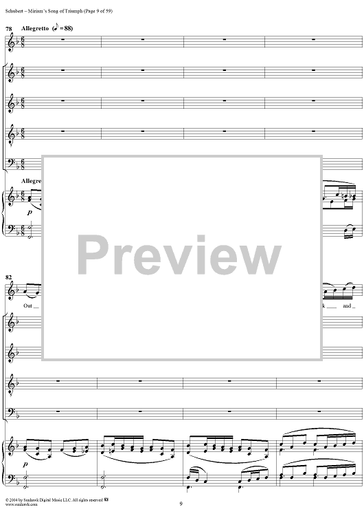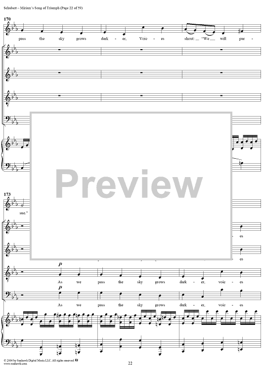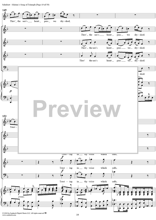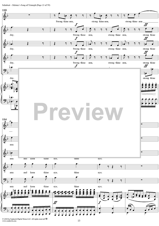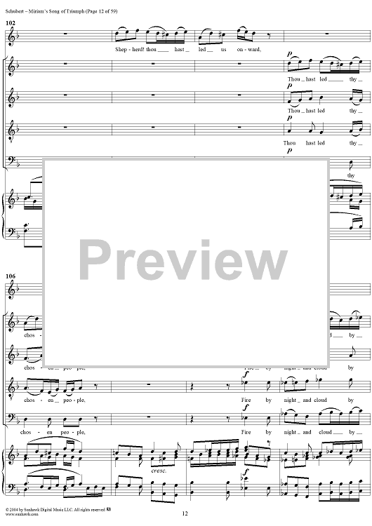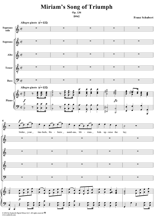 Digital Sheet Music for Miriam's Song of Triumph, Op. 136 by Franz Schubert scored for Four-part Mixed Chorus/Piano; id:304743