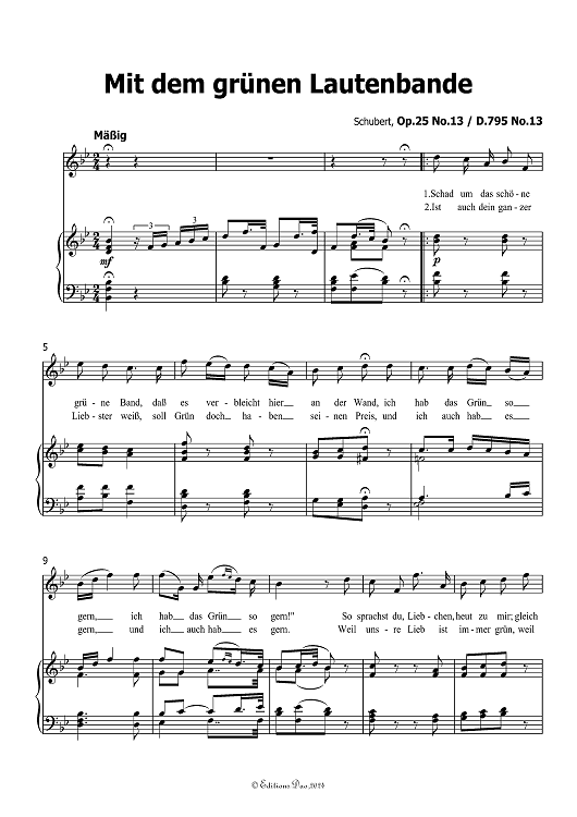 "Mit den grunen Lautenbande" Op. 25 No. 13, D.795 in Bb Major. By Franz Schubert