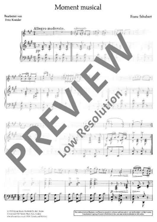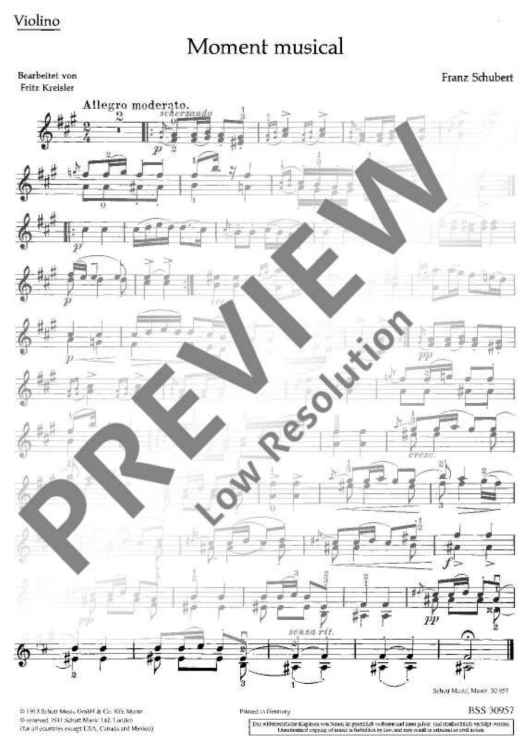 Digital Sheet Music for Moment musical F minor by Franz Schubert, Fritz Kreisler scored for Violin And Piano; id:471445