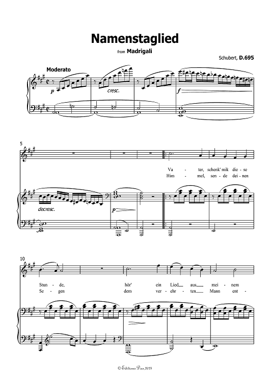 "Namenstaglied" from Madrigali D.695 in A Major by Franz Schubert