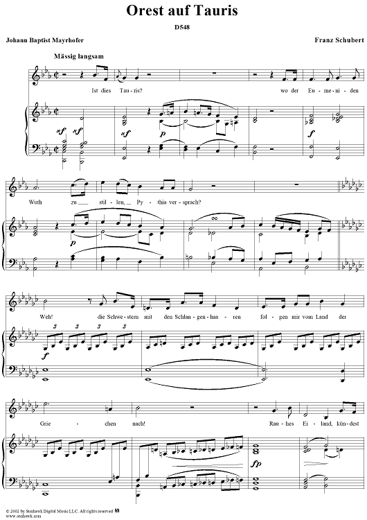 Digital Sheet Music for Orest auf Tauris, D548 by Franz Schubert scored for Voice/Piano; id:256865