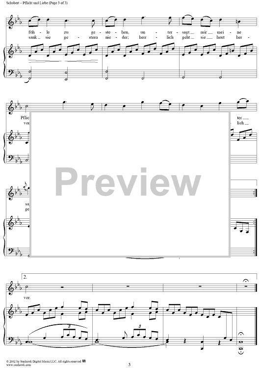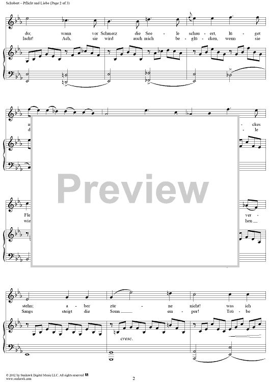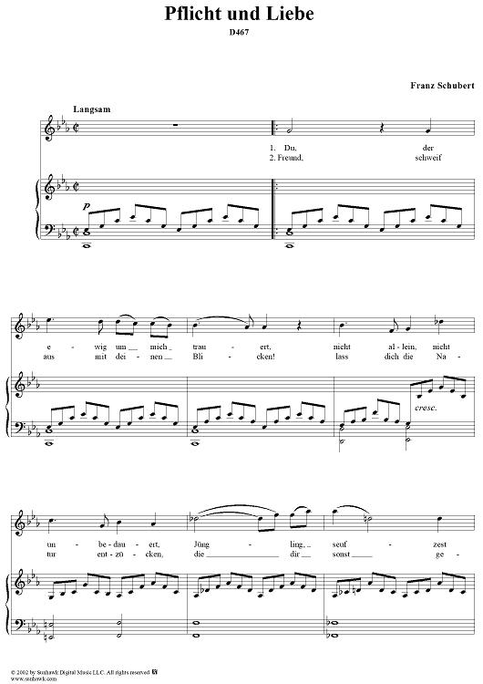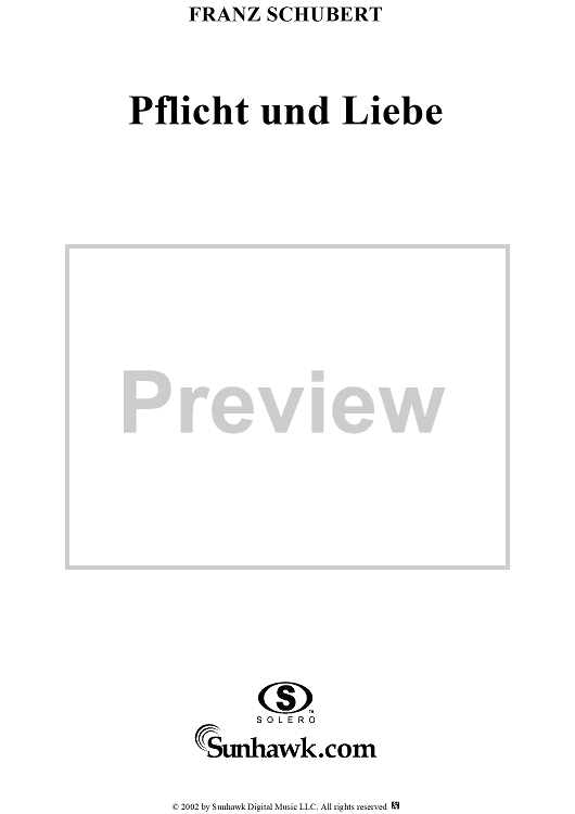 Digital Sheet Music for Pflicht und Liebe, D467 by Franz Schubert scored for Voice/Piano; id:256860