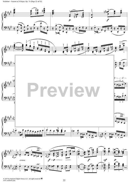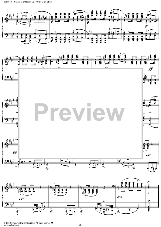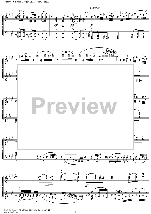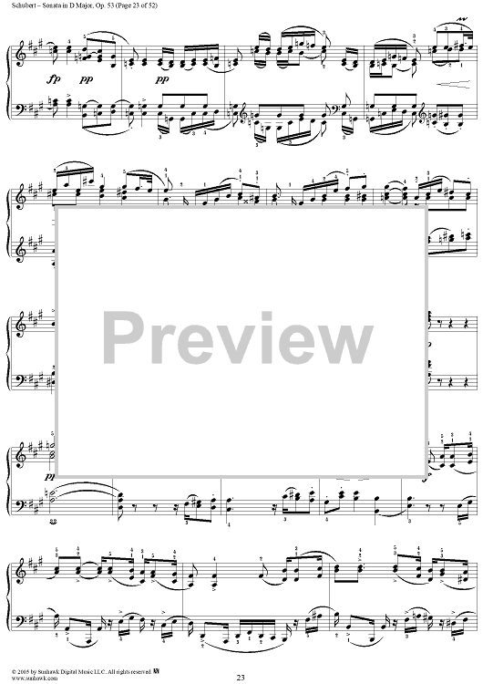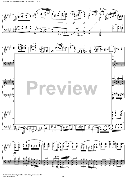 Digital Sheet Music for Piano Sonata No. 17 in D major, Op. 53, D850, Mvmt. 2 by Franz Schubert scored for Piano Solo; id:313365